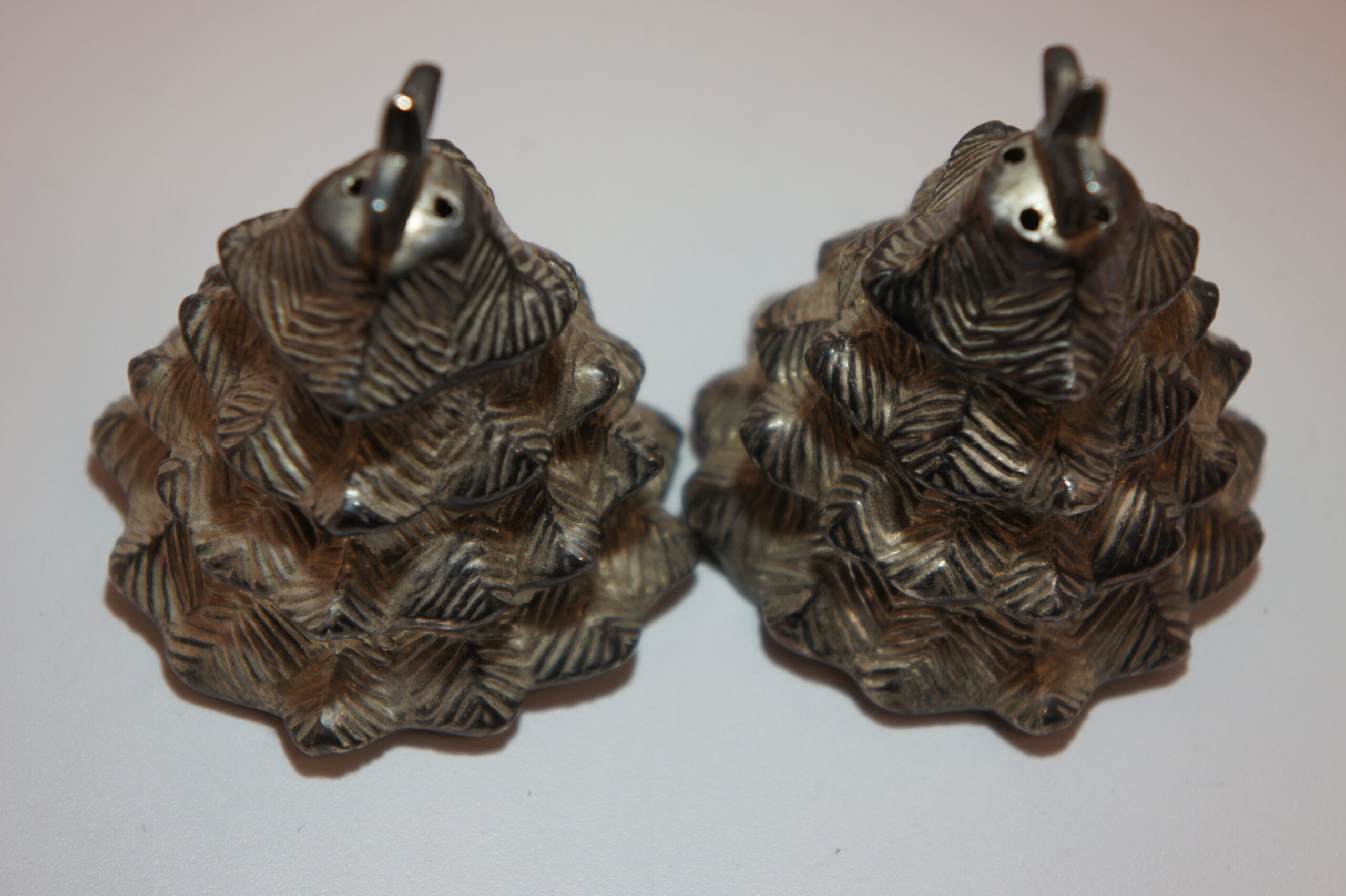 Online worden vergelijkbare kerstboom-peper- en zoutstrooiers met ster vaak aangeboden als “vintage” en regelmatig als zilverkleurig of verzilverd, bijvoorbeeld bij sets die op eBay als Godinger Christmas tree shakers worden beschreven. Daarnaast zijn er op Etsy ook meerdere aanbiedingen van kerstboom-strooier sets met ster bovenop te vinden, meestal met algemene omschrijvingen zoals “vintage Christmas tree salt & pepper”. Dit helpt vooral om de stijl te plaatsen; merk en exacte herkomst van dit Kerstboom met ster setje blijven op basis van de foto niet met zekerheid vast te stellen.
